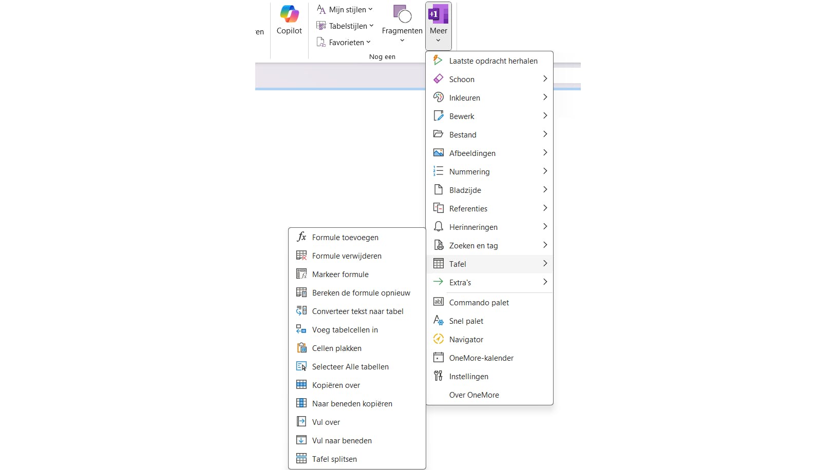 OneMore is een degelijke opensource-add-in die een verzameling kwaliteitsfuncties aan OneNote toevoegt. Nadat je de gratis add-in (https://onemoreaddin.com/) hebt geïnstalleerd, wordt er een nieuwe groep functies in het tabblad Start toegevoegd. Die groep heet op een Nederlands systeem: Meer.