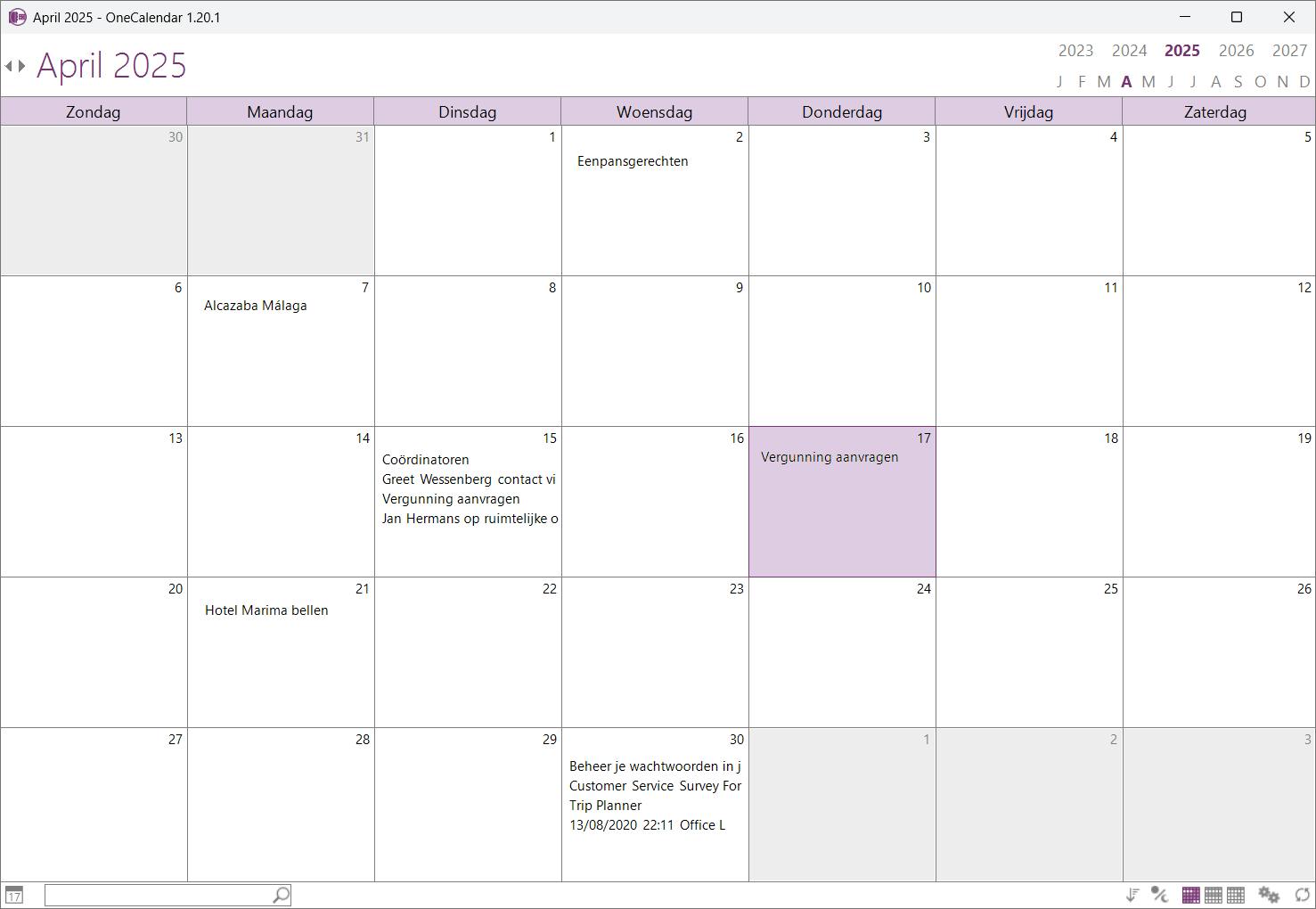 OneCalendar: agenda met notities