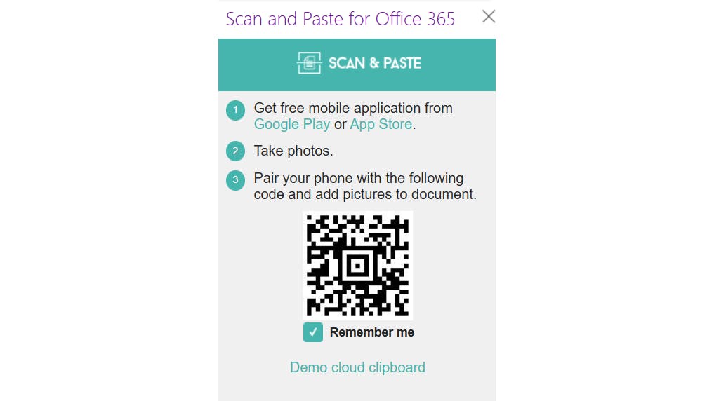 Scan&Paste (www.scanandpaste.com) is de combinatie van een mobiele app en een add-on waarmee je moeiteloos afbeeldingen, QR-codes en OCR-tekst toevoegt aan Microsoft Word, PowerPoint en OneNote. Wanneer je de app hebt gedownload, scan je het document of de afbeelding met je telefoon. Zorg dat de invoegtoepassing is geïnstalleerd in de Office 365-toepassing. Voor Word en PowerPoint kan dat in de lokale desktop-versie.