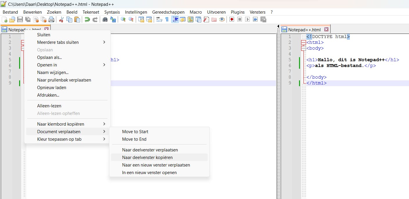 Waar je bij veel tekstverwerkers slechts een enkele versie van een bestand kunt openen, werkt Notepad++ met deelvensters. Daarmee kun je twee (of meerdere) versies van hetzelfde bestand naast elkaar openen. Handig als je kleine aanpassingen wilt doen zonder elke keer door het volledige document te hoeven scrollen.