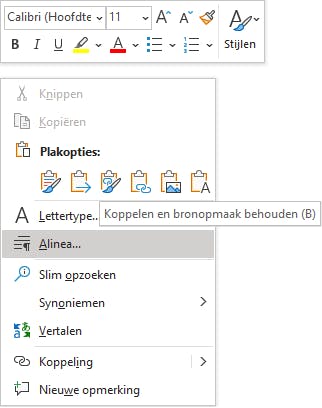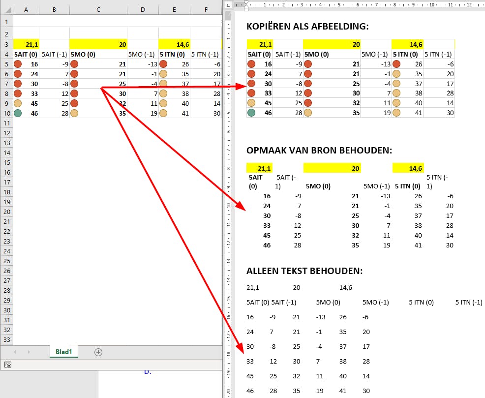 Om de tabel in Word te krijgen, klik je met de rechtermuisknop op de doellocatie en beweeg je bij Plakopties met de muisaanwijzer boven de zes icoontjes. Je merkt meteen wat de verschillende mogelijkheden betekenen.
