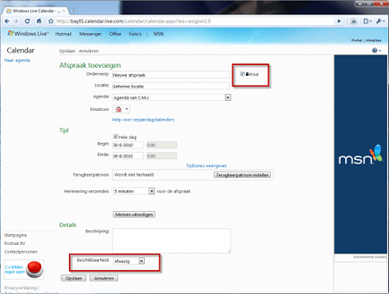 Door voor Privé te kiezen, blijft een specifieke afspraak buiten het zicht van collega's.