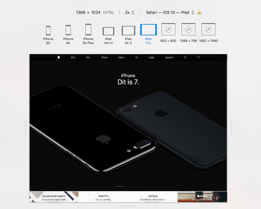 Je ziet nu hoe een website eruitziet op het apparaat dat je bovenin hebt geselecteerd. Wil je weten of je pagina goed te zien is op bijvoorbeeld een iPad, klik dan op één van de iPad-icoontjes.