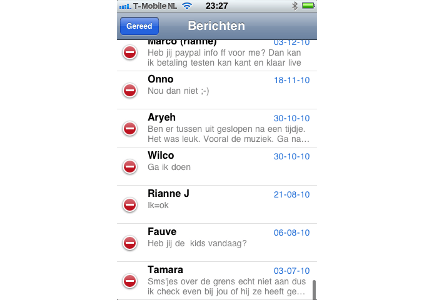 Voorkom extreem lange lijsten met sms-berichten, hier wordt de iPhone (3G) behoorlijk traag van.