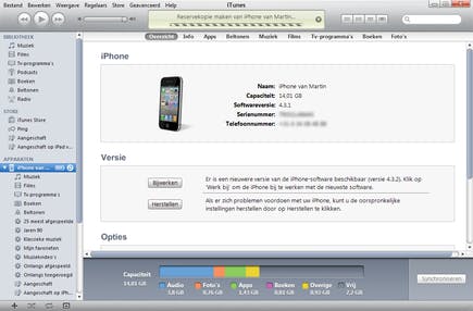 Via iTunes kunt u contactpersonen, instellingen en de bibliotheek overzetten naar de nieuwe telefoon.