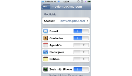 Synchroniseren en back-ups terugzetten werkt prima, maar u moet de iPhone er wel fysiek voor aan de pc koppelen. Als de pc gestolen wordt of stuk gaat, hebt u geen reservekopie meer om terug te zetten. Wat apps, muziek enzovoort betreft, is daar niets aan te doen, maar belangrijke zaken als contactpersonen, agenda-informatie en zelfs afbeeldingen kunt u synchroniseren met MobileMe (79 euro per jaar). U maakt een account via www.me.com. Wanneer u een account hebt, gaat u op de iPhone naar Instellingen / Mail, Contacten, Agenda en drukt u op Voeg account toe. Vul de accountgegevens in van het MobileMe-account en druk op Volgende. Nu kun u aangeven wat precies gesynchroniseerd moet worden (E-mail, Contacten, Agenda's, Bladwijzers en Notities). Hierna worden deze zaken automatisch gesynchroniseerd. Wanneer u een nieuwe telefoon hebt (of de oude is gestolen), voegt u simpelweg het MobileMe-account weer toe, waarna de gegevens worden gedownload naar de telefoon.