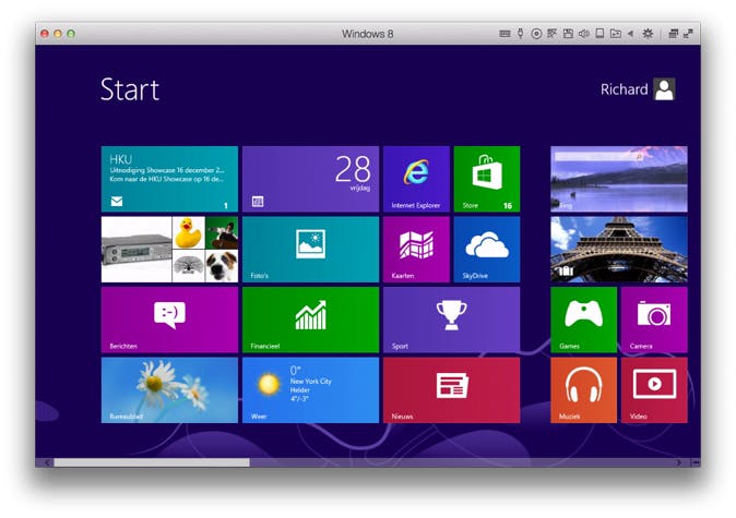 Met Parallels Desktop kun je andere besturingssystemen draaien binnen je eigenlijke besturingssysteem. Nu zullen veel Mac-gebruikers Windows afkeuren, maar toch kan het erg handig zijn om op je Mac toegang tot Windows-programma's te hebben. Naast dat je in een apart venster Windows kunt draaien, is het met de Coherence-modus mogelijk om Windows bijna volledig te integreren in OS X, een te gekke manier om beide systemen samen te kunnen gebruiken. Hierdoor zie je bijvoorbeeld het icoontje van Internet Explorer op en neer stuiteren als je het programma opent vanuit één van de Stapels rechtsonder. Je hoeft Parallels Desktop trouwens niet te gebruiken voor Windows, ook een nieuwere versie van OS X kun je eerst testen als virtuele machine. En je kunt ook eenvoudig Android of een preview van Windows 10 even testen.