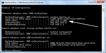 Nu dient u OS X nog te vertellen waar het uw pc precies kan vinden. U hebt hier het IP-adres voor nodig van de pc waarmee u wilt verbinden. Klik op Start en typ in het invoerveld cmd en druk op Enter. Er verschijnt een zwart venster. Tik hier: ipconfig. Afhankelijk van uw configuratie verschijnt hier een lange lijst met informatie. Bent u verbonden via een ethernetkabel zoek dan het kopje Ethernet-adapter voor Lan-verbinding. Bent u draadloos verbonden zoek dan Draadloze LAN-adapter (met de naam van uw draadloze verbinding). Noteer het IP-adres (in ons geval 192.168.1.100). In OS X klikt u binnen Finder op Ga en vervolgens op Verbinden met Server. Vul het IP-adres in achter smb:// en klik op Verbind. Selecteer nu de mappen die u wilt toevoegen (door de Command-toets ingedrukt te houden, kunt u meerdere mappen selecteren). De mappen verschijnen binnen Finder. Een kleine laatste stap als u niet telkens handmatig wilt verbinden, voert u uit door te klikken op Systeemvoorkeuren en vervolgens op Accounts. Klik op uw account en vervolgens op het tabblad Inloggen. Klik op het plusteken en voeg de map toe die u zojuist hebt toegevoegd in Netwerk. Vanaf nu wordt de verbinding automatisch tot stand gebracht.