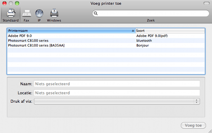 Wanneer u Bonjour installeert vindt OS X uw Windows-printer onmiddellijk.