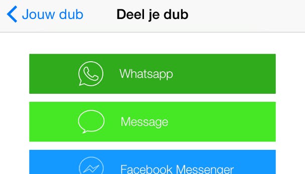 Vervolgens worden er verschillende manieren getoond om je video te delen. Dat kan bijvoorbeeld via WhatsApp of via iMessage, maar ook rechtstreeks met Facebook Messenger. Ben je toch een beetje verlegen? Dan kun je het filmpje ook gewoon opslaan op je telefoon door te drukken op Bewaar op filmrol.