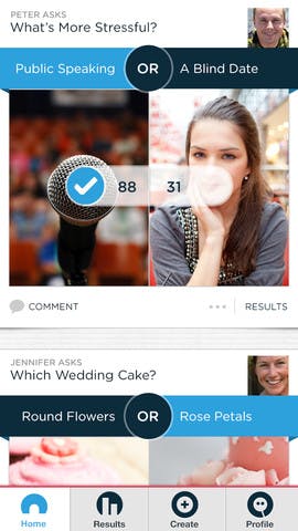 Polar is een app waarin gebruikers hun mening kunnen geven over kleine dagelijkse dilemma's die andere andere gebruikers dwars zitten. Wordt het een goede actiefilm of toch een romantische film om bij weg te kwijnen? Ga je vandaag met een korte- of een lange broek naar buiten? Met dit concept is de app in de basis vergelijkbaar met de app Seesaw die we hier een tijdje geleden hebben besproken. Het beantwoorden van de vragen van anderen blijft echter een verslavende bezigheid die erg leuk kan zijn.