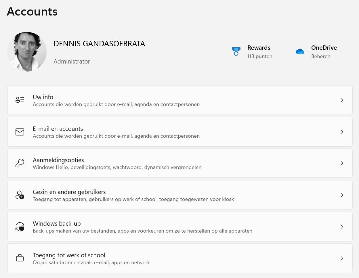 Via dit onderdeel beheer je de instellingen van de actieve gebruikersaccount. Boven in het venster lees je de gebruikersnaam en zie je het e-mailadres dat je gebruikt voor je Microsoft-account. Via Uw foto aanpassen pas je de actuele gebruikersafbeelding aan. Kies voor Camera openen om een foto te maken met de camera van de computer of kies Door bestanden bladeren om een bestaande foto te kiezen. Gebruik je een Microsoft-account, maar wissel je dat liever in voor een lokaal account? Klik op In plaats daarvan aanmelden met een lokaal account. Deze optie is niet beschikbaar in de Home-editie van Windows 11: een Microsoft-account is in die versie verplicht.
