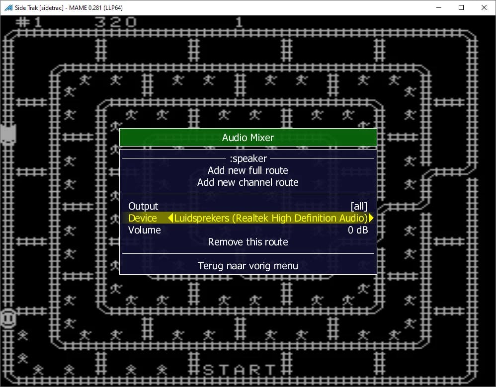 Tijdens het spelen van een spel kun je diverse geluidsopties aanpassen. Hoor je bijvoorbeeld deuntjes uit de monitorspeakers, maar gebruik je hiervoor liever aangesloten pc-speakers? Druk dan in het gamevenster op de Tab-toets. Via Audio Mixer verschijnt er een klein venster. Klik achter Device zo nodig meermaals op het pijltje totdat de juiste audiobron is geselecteerd. Daarnaast pas je optioneel ook nog het standaardvolume aan. Klik op Terug naar vorig menu.