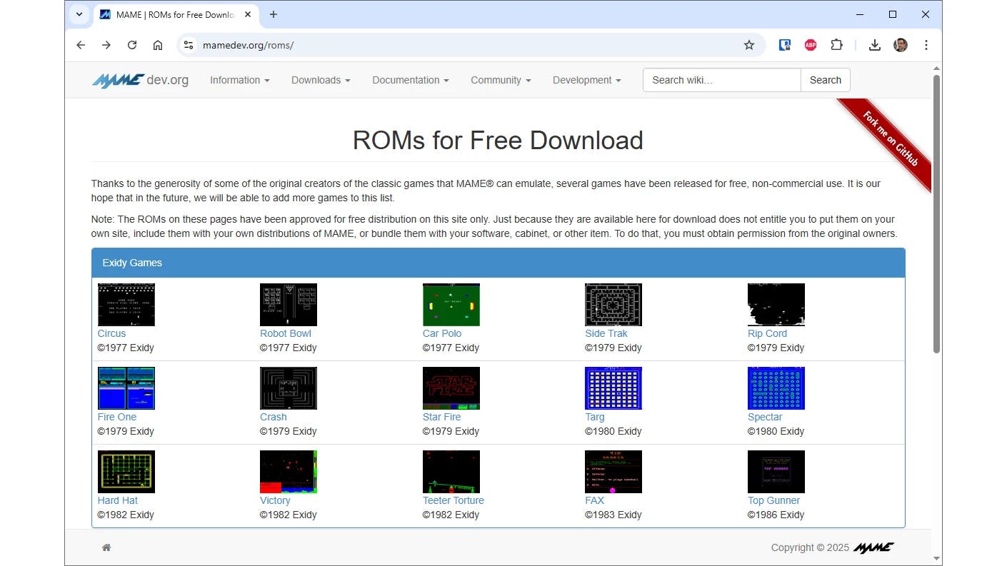 Auteursrechtelijk beschermde ROM's mag je niet downloaden. Gelukkig beheert MAME zelf ook een behoorlijke collectie klassieke games. De originele makers hebben toestemming gegeven om deze ROM-bestanden gratis te gebruiken. Het betreft tientallen titels die tussen 1977 en 2001 zijn uitgebracht.