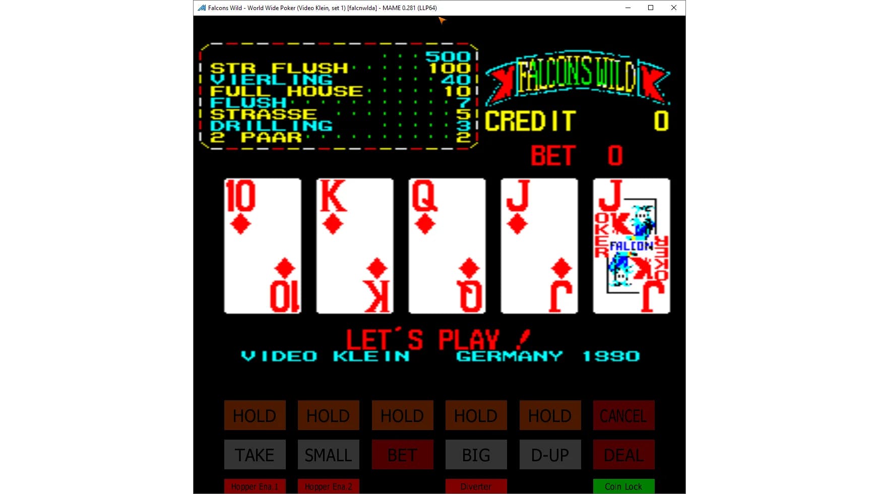 Klaar met spelen? Klik dan rechtsboven op het kruisje om weer terug te gaan naar het beginscherm van MAME. Je kunt als alternatief ook op de Escape-toets drukken.