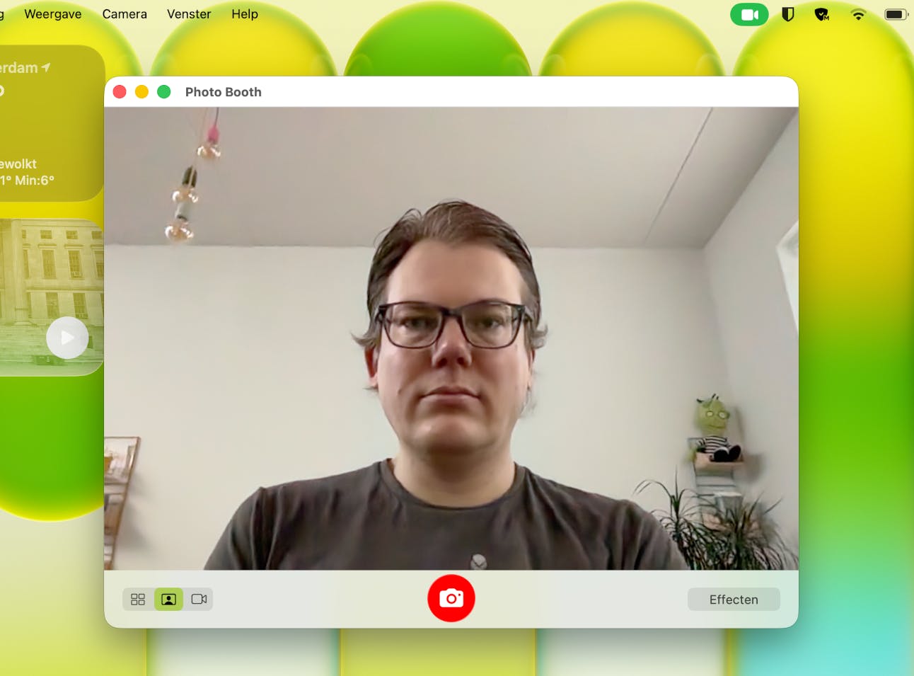 In de schermrand is een Full HD-webcam verwerkt en die levert ook bij minder licht een prima plaatje. Ten opzichte van de MacBook Air moet je de functionaliteit waarbij de webcam je volgt en altijd midden in beeld houdt missen, en ook bureaubladweergave, waarmee je tegelijkertijd iets op je bureau laat zien, ontbreekt. Je kunt via macOS wel de achtergrond vervagen of vervangen, en dat werkt dan in alle programma’s. Een beetje vreemd is dat een lichtje naast de camera ontbreekt. In plaats daarvan zie je een pictogram in de menubalk. Ik zou toch liever ook een lampje hebben. Volgens Apple is die softwarematige indicator wel gewoon veilig en niet te manipuleren, maar ik heb meer vertrouwen in een lampje.
