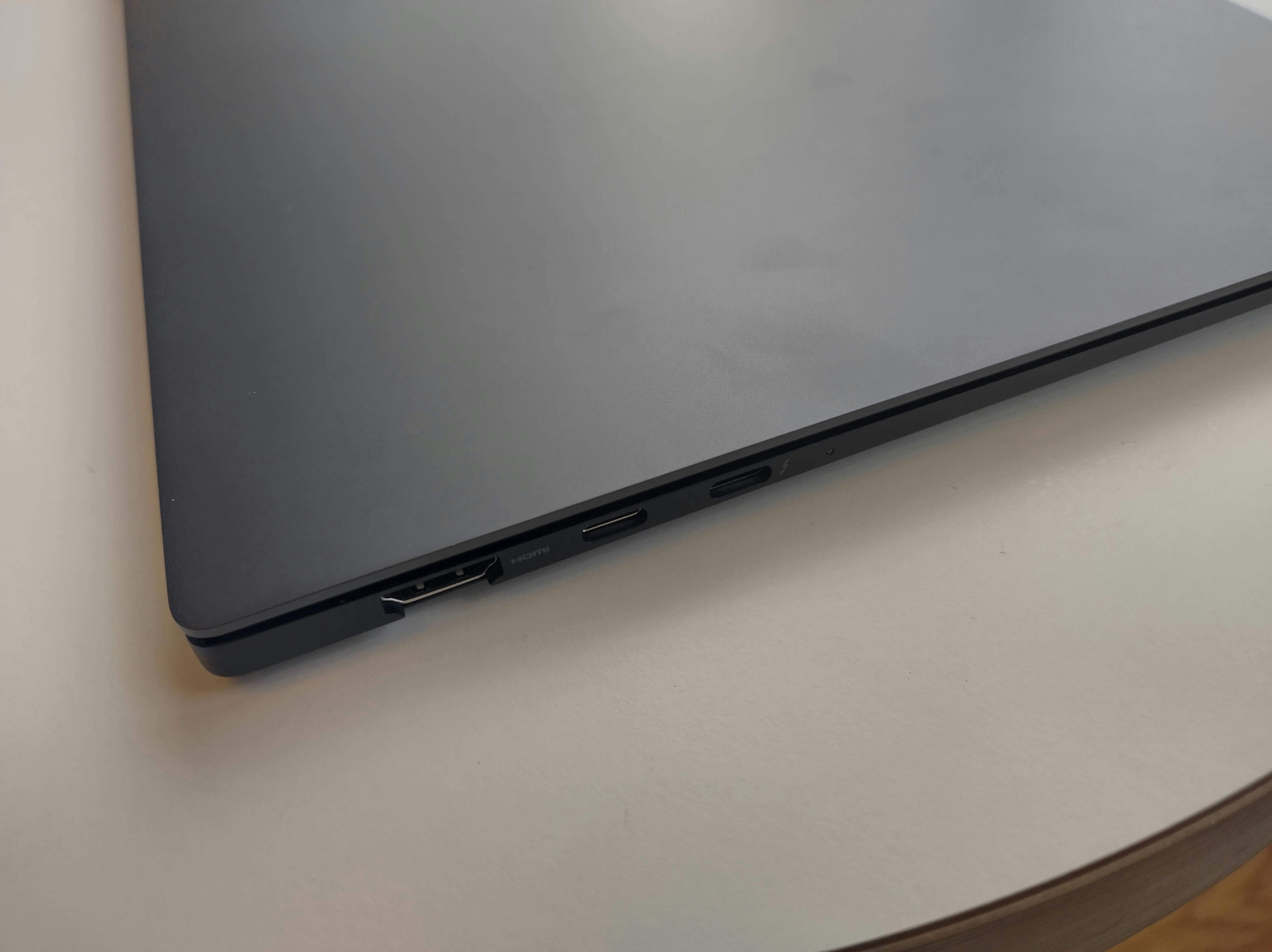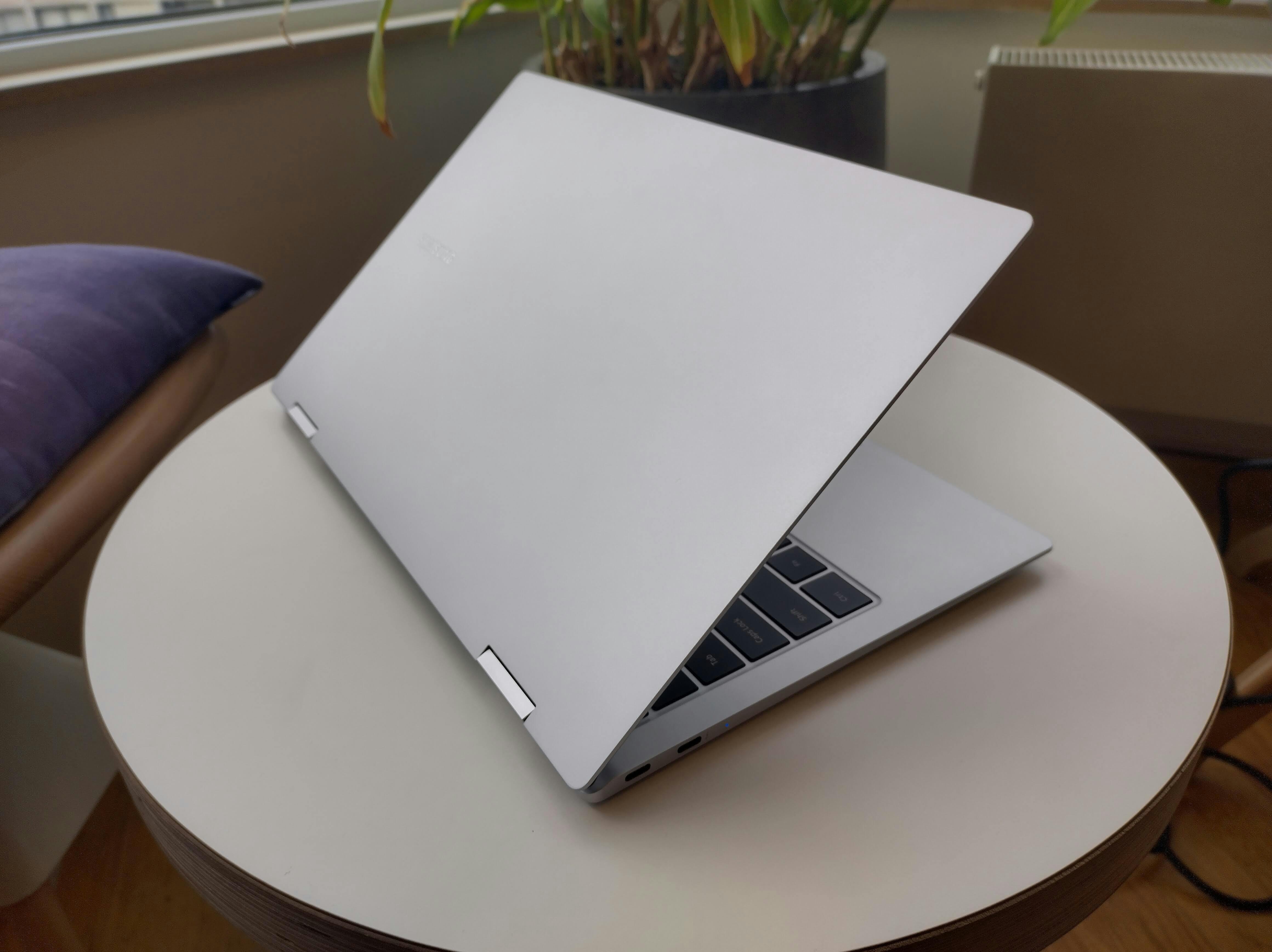 De behuizing voelt bij het palmgedeelte stevig aan, zo veert het toetsenbord niet mee als je op de laptop tikt. Helaas is de schermdeksel naar mijn smaak wel net iets te dun, het scherm laat zich eenvoudig torderen. Voor een dunne en lichte laptop heeft de Galaxy Book2 Pro opvallend veel aansluitingen. Niet alleen krijg je twee keer usb-c (met 1x Thunderbolt 4), maar is er ook voorzien in een usb-a-poort, hdmi, hoofdtelefoonaansluiting en een micoSD-kaartslot.