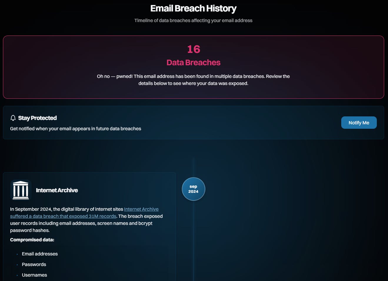 Het is verstandig om regelmatig te controleren of een van je login-id's al in een online datalek voorkomt. Dit kan via Have I Been Pwned. Hier vul je e-mailadres in en je ziet meteen hoeveel en welke datalekken er zijn. Klik bovenaan op Notify Me voor een gratis melding zodra je adres in een nieuw lek opduikt. Klik op Passwords om te controleren of een wachtwoord reeds voorkomt in een datalek.