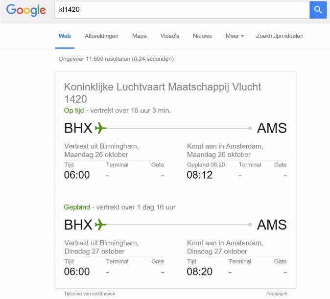 Vluchtinformatie weergeven met Google.