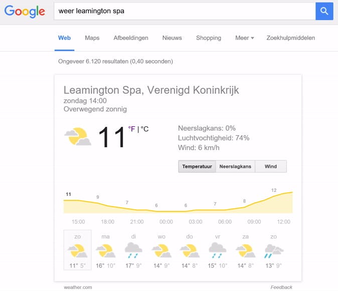 Weersverwachtingen weergeven met Google.