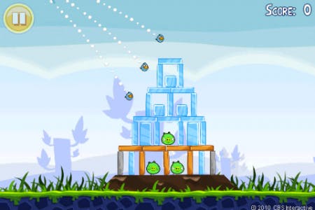 In Angry Birds moet u inschatten met welke curve de vogels moeten worden gekatapulteerd.