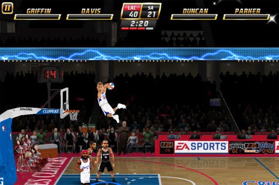 Wie in de jaren negentig al computerspellen speelde, zal de naam NBA Jam bekend in de oren klinken. Dit mooie sportspel maakte van basketbal een waar spektakel op de computer: spelers maakten metershoge sprongen en duizelingwekkende dunks. In de iPhone-versie is het spel nagenoeg precies nagemaakt, inclusief de vreemde capriolen van de sportlui. Met virtuele knoppen aan de rechterkant van het scherm kunt u overspelen, een punt maken of de bal van de tegenstander afpakken. De bediening verdient een compliment: hoewel het een snel spel is, kunt u altijd de actie uitvoeren die u in gedachten had. NBA Jam kan met recht een van de beste sportspellen voor smartphones worden genoemd.
