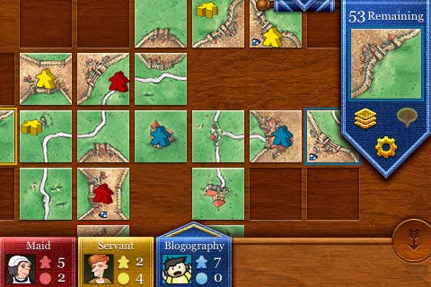 Kolonisten van Catan mag dan het meest gespeelde bordspel van Nederland zijn, veel liefhebbers van gezelschapsspellen dragen het originele Carcassonne ook een warm hart toe. Een bijzonder spelelement is dat spelers zelf de onderdelen van het speelveld neerleggen. Ze maken dus in feite hun eigen spelbord. Het doel is om bergen, wegen en weilanden te creëren en daar burgers op te plaatsen. Als de stukken op zijn, worden de punten geteld en wordt de slimste bouwer beloond met de overwinning. Als u de iPhone-versie van Carcassonne met iemand anders wilt spelen, kunt u de smartphone het best op tafel leggen. Het spel komt binnenkort ook uit voor Android en BlackBerry.