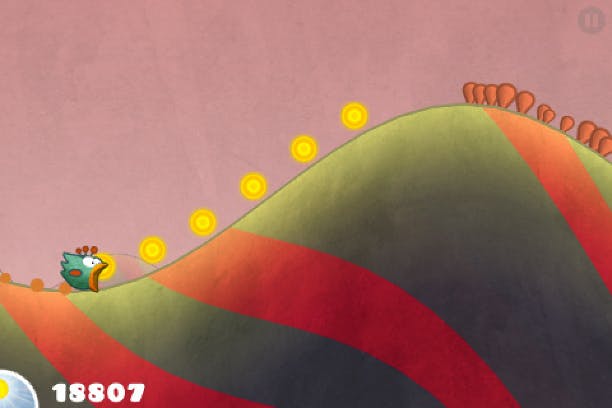 Het is niet de bedoeling dat u het scherm in Tiny Wings aanraakt als het vogeltje een berg op gaat.