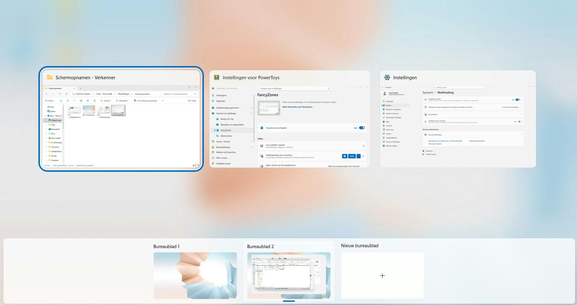 Verplaats apps tussen desktops door in de taakweergave een venster te slepen, of houd de context netjes door een app opnieuw te openen op het gewenste bureaublad. Wisselen gaat vloeiend via de toetscombinatie Windows-toets+Ctrl+Pijl.