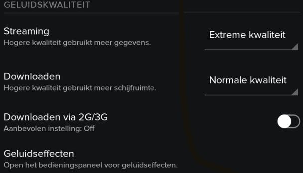 Vergeet niet in de Spotify-instellingen, op het apparaat dat aan de stereo gekoppeld is, de geluidskwaliteit op 'extreem' te zetten.
