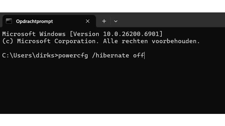Wanneer de slaapstand is ingeschakeld, schrijft je Windows 11-pc bij het afsluiten grote hoeveelheden gegevens naar de SSD. Het bestand hiberfil.sys, dat Windows hiervoor aanmaakt, kan tientallen gigabytes groot zijn. Gebruik je de slaapstand nooit, dan kun je die beter uitschakelen. Zo bespaar je schijfruimte en verminder je onnodige schrijfbewerkingen, wat de levensduur van de SSD ten goede komt. De slaapstand is bedoeld om je snel te laten hervatten waar je was gebleven, maar dat voordeel weegt niet altijd op tegen de extra belasting van de SSD. Om de slaapstand uit te schakelen, typ je Opdrachtprompt in het zoekvak en kies je Als administrator uitvoeren. Bevestig met Ja in de prompt van het Gebruikersaccountbeheer. Typ vervolgens het commando: powercfg /hibernate off en druk op Enter. Wil je later de slaapstand opnieuw activeren, gebruik dan hetzelfde commando met on in plaats van off: powercfg /hibernate on.