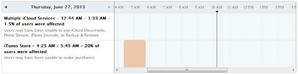 Op de statuspagina van Apple is te zien dat de iTunes Store-storing plaatsvond tussen 4:25 en 5:45 uur Nederlandse tijd. “20 procent van de gebruikers werd hierdoor getroffen”, aldus Apple op de website. De App Store gaf overigens geen problemen ten tijde van de storing.