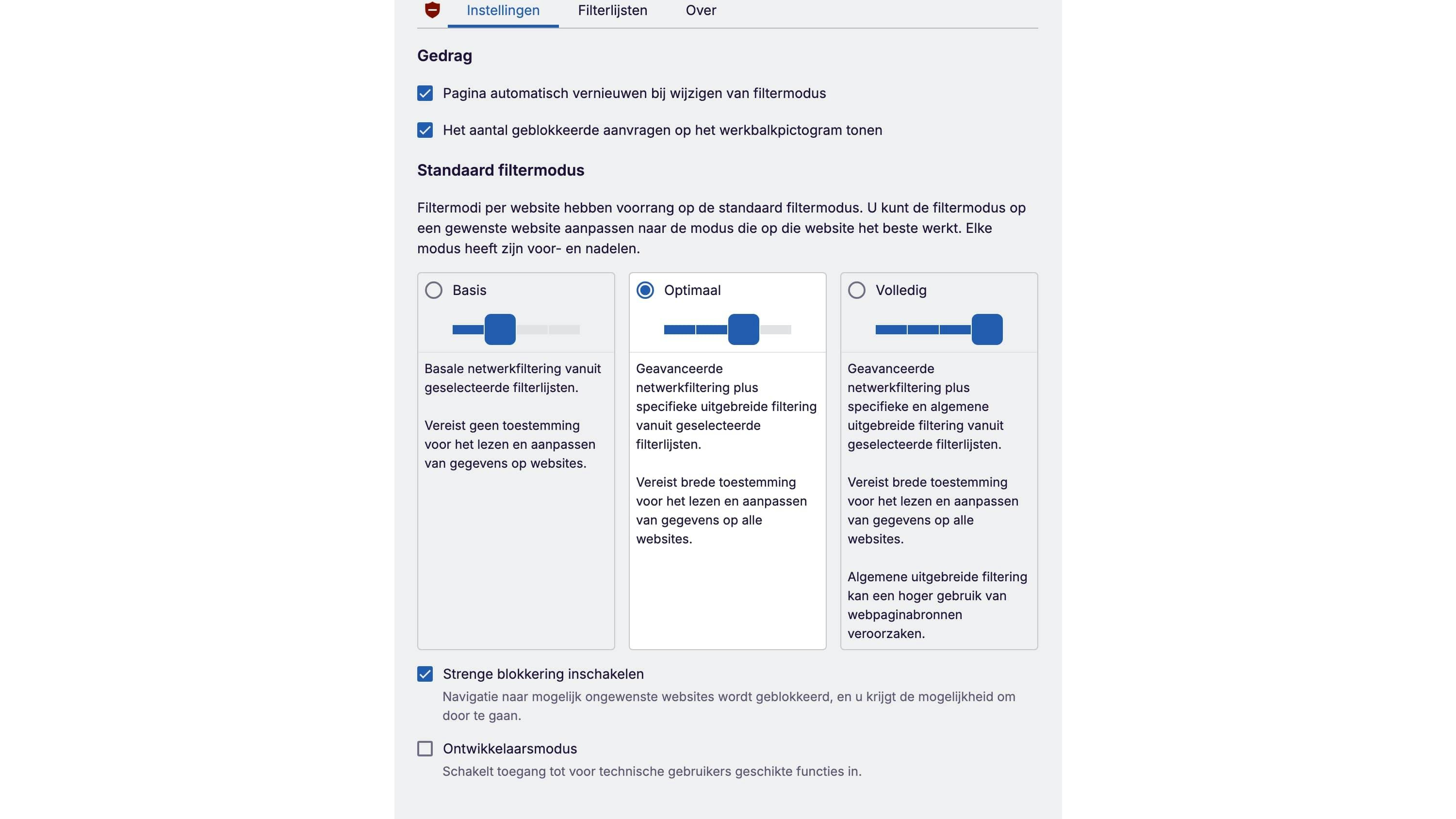 Naast YouTube werkt uBlock Origin ook op talloze andere websites. Je kunt eigen filters instellen of kiezen uit uitgebreide filterlijsten die door de community worden onderhouden. Daarmee houd je niet alleen advertenties buiten beeld, maar ook tracking-scripts en andere ongewenste elementen. Behalve 'alles of niets' adblocken kun je de filters in vier sterktes instellen. Ze werken met een keuzeschakelaar in het popup-venster van uBlock. Voor wie zonder afleiding video's wil bekijken, is uBlock Origin een van de krachtigste en betrouwbaarste oplossingen.