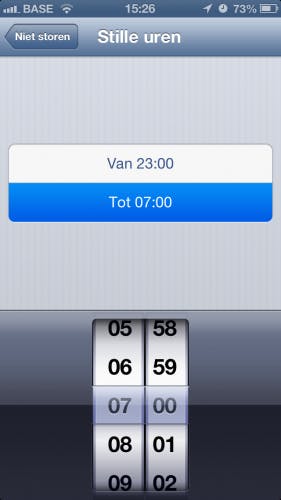 Je hoeft slechts eenmalig in te geven tussen welke uren je niet gestoord wilt worden.
