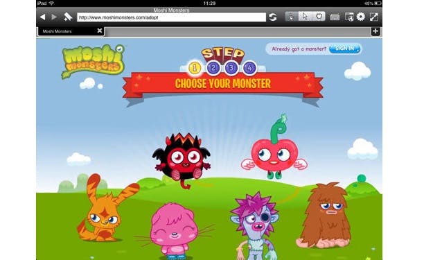 Puffin is gratis te proberen en kost in de volledige versie 2,69 euro. We moeten zeggen dat Moshi Monsters (onder) en Flash Driving Game fantastisch draaien. Toch kon het niet overweg met de Flash-versie van Disney Fantasyland. De optie om de app eerst uit te proberen is een flink voordeel, omdat je aan de hand daarvan kunt bepalen of de software aan je behoeften voldoet.