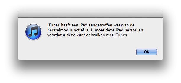 iTunes zal een iOS-apparaat in herstelmodus direct herkennen.