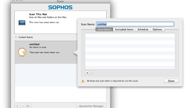 Als je zorgt dat je besturingssysteem altijd up-to-date is middels de beveiligingsupdates, ben je op dit moment goed beveiligd tegen virussen. Maar of dit in de nabije toekomst ook zo blijft, is natuurlijk maar de vraag. Er is een aantal virusscanners voor de Mac verkrijgbaar en gelukkig hoef je hiervoor niet je portemonnee te trekken. Een goede gratis optie is Sophos Anti-Virus for Mac.