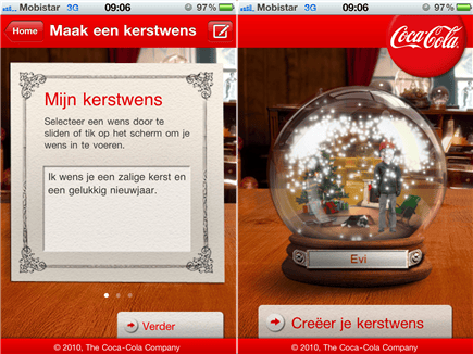 Een kerstwens voor het goede doel? Dat kan met deze applicatie van Coca Cola. Per kerstwens - in de vorm van een originele snow globe - schenkt de frisdrankfabrikant een bedrag aan de Cliniclowns.