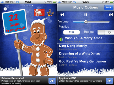 Op zoek naar een digitale adventskalender? Via deze applicatie kun je elke dag een kalendervakje openen. Als verrassing krijg je een kerstmoppen, interessant weetje over de Kerstman, een wallpaper, een kerstliedje, enzovoort.
