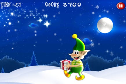De Kerstman heeft een stoute elf in zijn team die niets anders doet dan pakjes stelen. Het is jouw taak om hem tegen te houden. Let wel, als je een brave elf, kerstvrouw of rendier aantikt, ben je één derde van je punten kwijt! Concentratie vereist!