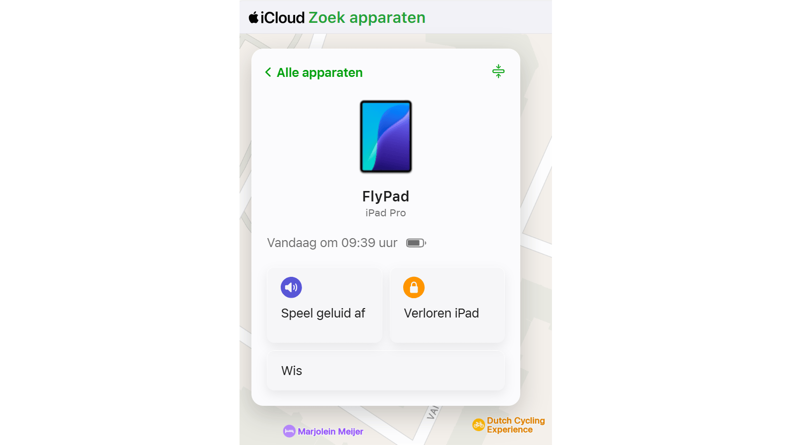 Is het apparaat definitief weg, dan kun je het op afstand wissen. Klik op Wis. Hierbij worden alle content en instellingen gewist. Na deze actie kun je het apparaat ook niet meer vinden via de zoekfunctie.