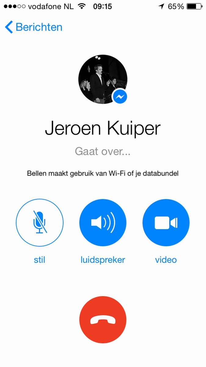 Via de Messenger-app van Facebook kun je je vrienden opzoeken. Het het camera-icoontje rechtsbovenin het scherm start je een videogesprek. Handig is dat de persoon die je belt zowel een melding krijgt op zijn of haar telefoon, als in de chatfunctie op de website van Facebook. Videobellen via de browser kon al langer.