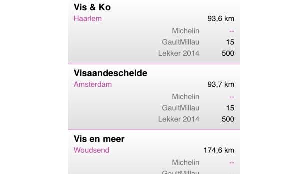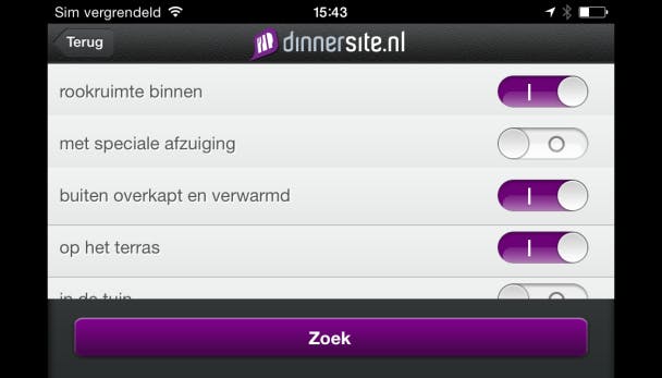 Zijn die er niet? Dan zoek je met de zoekbalk naar locaties verder uit de buurt om zo toch de driesterrenrestaurants te vinden. Buiten deze optie kun je ook zoeken op speciale mogelijkheden die een restaurant biedt, bijvoorbeeld of ze een terras hebben of een rookruimte. Je kunt tot in detail aangeven wat je wilt, de app laat je weten of het er is.