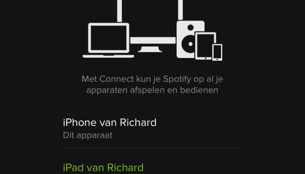 Met Spotify Connect kun je een Spotify-sessie op een ander apparaat bedienen met je iPhone. Geweldig als je bijvoorbeeld je iPad hebt aangesloten op je stereo-installatie en je met je iPhone op de bank zit. Zorg ervoor dat je op zowel de iPhone als iPad de laatste versie van Spotify hebt geïnstalleerd en dat ze op hetzelfde wifi-netwerk zijn aangemeld. Tik naast de afspeelknop op het icoontje met de luidspreker en cirkel. Tik vervolgens op de naam van je iPad. Je bedient Spotify op je iPad nu via je iPhone. Spotify Connect werkt ook met Android-apparaten samen.