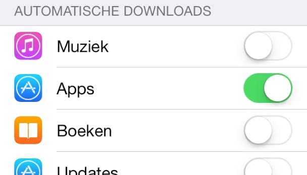 Als je Automatische downloads aanzet, heb je op je iPhone en iPad dezelfde apps.