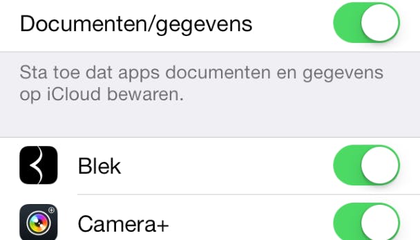Zorg dat de optie Documenten/gegevens in iCloud aanstaat om documenten tussen verschillende apparaten te synchroniseren.