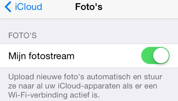 Met de optie Mijn fotostream aangevinkt, heb je dertig dagen de tijd om je foto's naar een ander apparaat te downloaden.