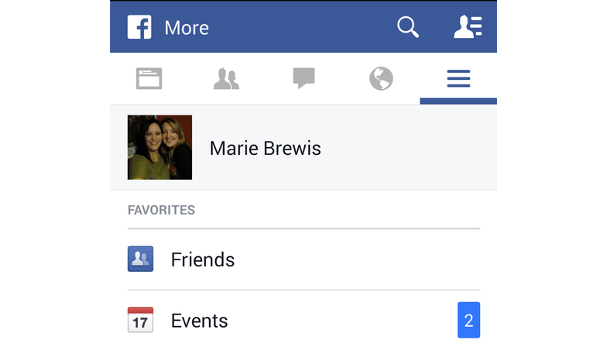 Stap 2. In het Settings menu kun je nu een link naar je profielpagina, vrienden, evenementen, foto's, pagina's die je beheert, enzovoorts zien.
