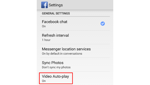 Kies vervolgens Settings, en selecteer Auto-play onder Video. Je krijgt vervolgens dezelfde drie opties: On, Wi-Fi Only en Off.