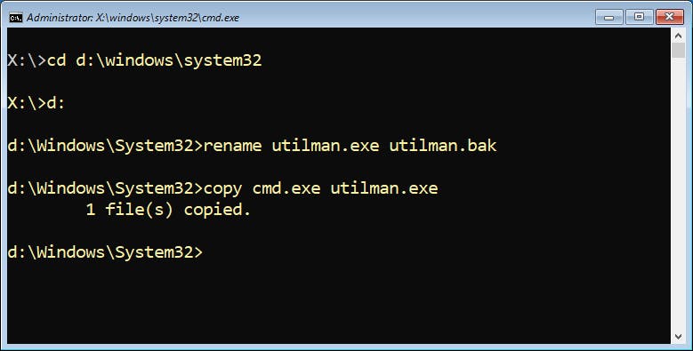Vind je zo’n registeringreep toch wat delicaat, dan kan het nog met een andere slimme truc. Start ook deze keer je pc op van de herstel- of installatiestick en ga opnieuw naar de Opdrachtprompt. Hier voer je dan de twee volgende commando’s uit: